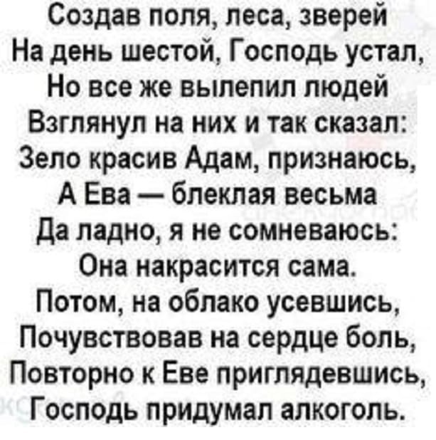 Библия, стих о сотворении жизни - ...И создал Бог мужчину и сказал что это хорошо...
