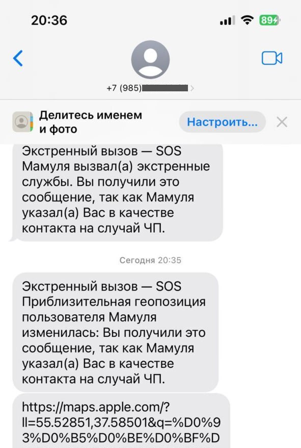 Приходит смс: абонент под именем/ником "Мамуля/Мама/Папуля/Папа/Брат/Братик/Тетушка" и пр. вызвал экстренные службы, а ваш номер указан как контакт в чрезвычайной ситуации. Затем приходит смс со ссылкой, указывающей якобы местоположение вашего родственника. Ссылка будет вредоносной, она ведет на фишинговый сайт, чтобы получить доступ к финансам (это легко, для авторизации войдите, вбейте цифры/коды подтверждения и т.д.).