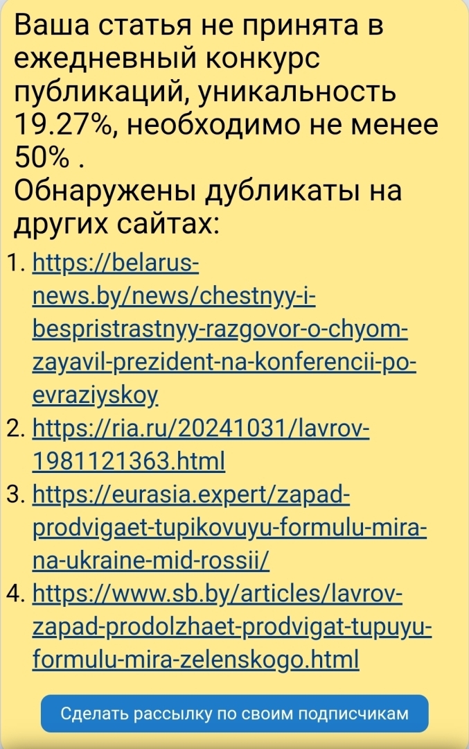 Но как оказалось, моя статья "НЕ УНИКАЛЬНА"!