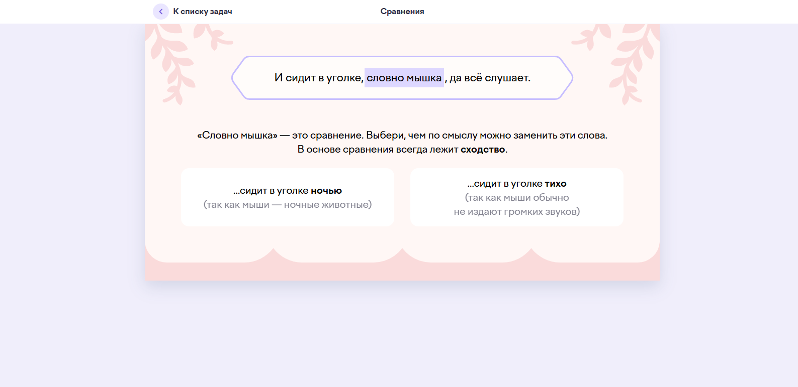 Нужно выбрать - чем по смыслу можно заменить словосочетание "словно мышка". Ответы на скринах: