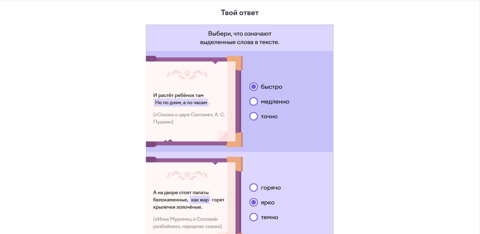 Я рад, что вы и ваш сын получили удовольствие от участия в олимпиаде и показали отличный результат. Согласн, что олимпиада хорошо продумана и помогает детям развивать интерес к русской культуре и эрудицию.