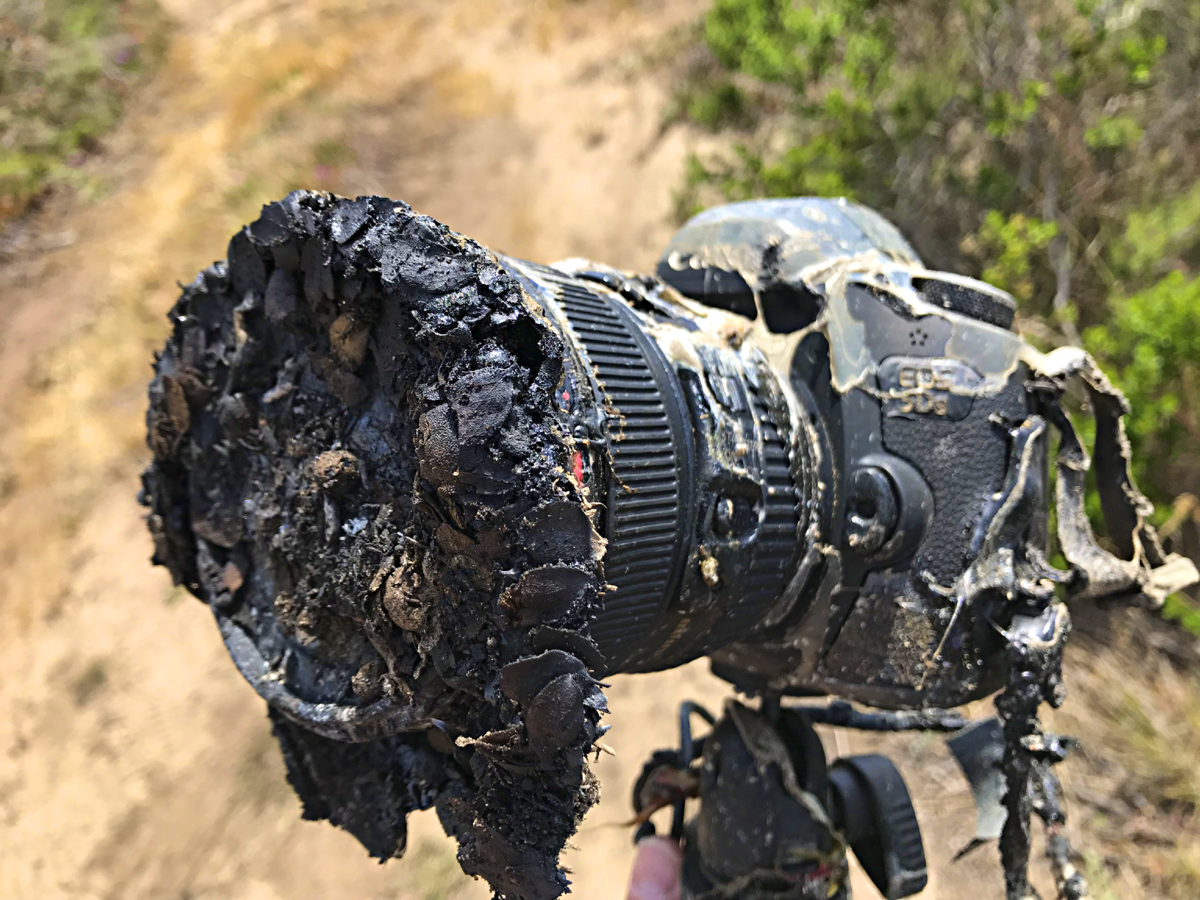Когда фотограф добрался до камеры, его уже ждали пожарные... Ингаллс вскрыл обгоревшую камеру и достал карту памяти, которая не успела пострадать.