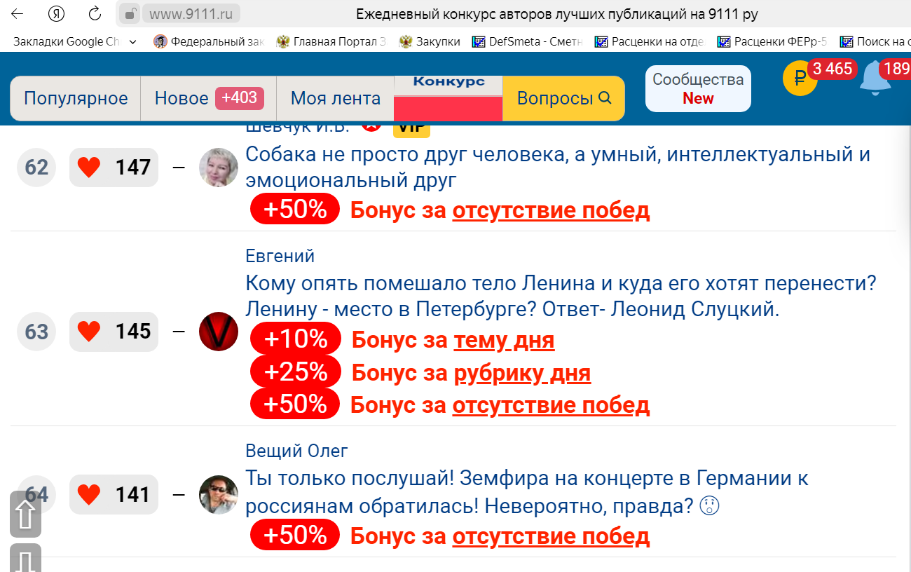 А в общем, всё нормально. Кому-то рубрику срезают, у кого-то аж по три бонуса светится. "Это нога - у того, у кого надо нога".