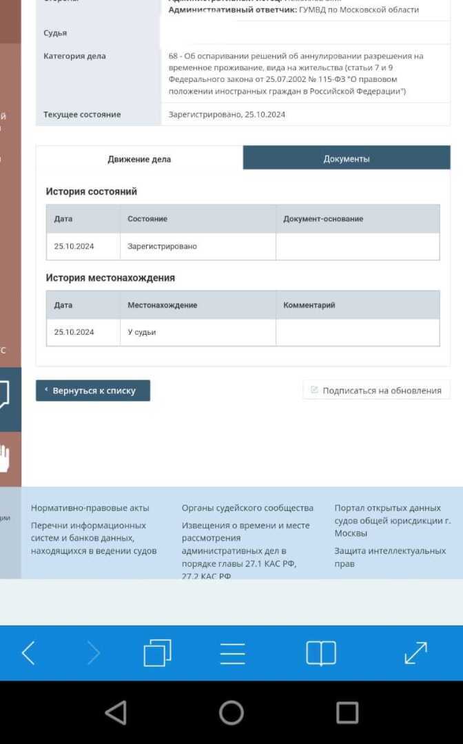 Всем привет. Моя тема возможна банальна, но как крик души. Аннулировали РВП, подала в суд, ответчик ГУ МВД Московской области Никитский переулок, д. 3, стр. 1. Территориальная подсудность этого адреса относится к Пресненскому районному суду согласно сайту mos-gorsud.ru,yuridicheskaya-konsultaciya online Туда и отправила иск. Думала, что месту регистрации будут долго тянуть, а по адресу ответчика раз-два и готово. Но не тут то было. 5 октября отправили. 10 октября суд иск получил. 25 октября зарегистрировали, хотя отобразилось это 28 октября. А далее, 2 ноября Возврат, так как дело не подсдно данному суду. 7 ноября поехала забирать в Пресненский суд определение. Там мне его не отдали, сказали не готово. Говорю: как не готово, во первых прошло 5 положенных дней, во вторых по требованию обязаны, в третьих, вы на сайте суда выставили, что Возвращено. Тут же,мне на почту приходит статус моего иска: Оставлено без движения. А секретарь суда и говорит: на словах скажу следующее, вам надо не в Пресненский суд подавать, а в Тверской. Через 5 минут, мне на почту прилетает оповещение о статусе иска, где Возвращено пропадает, а появляется статус Дело не подсудно данному суду-Основание-Остановлено без движения, и дата 6.11.2024 Друзья, кто нибудь, подскажите, кто подавал в суд на Гу МВД Московской области Никитский переулок, д. 3, стр. 1, в какой суд вы обращались? Потому что, на всех сайтах показывает, что ответчик относится к Пресненскому суду. И кто юридически силён, подскажите что делать то? У меня срок подачи иска до 9 декабря 2024 (так как уведомление об аннулировании подписано 9 сентября 2024, иск направлен 12 сентября через Сдэк, и 13 сентября полный пакет иска через Почта России), плюс, еще регистрация до 23 декабря 2024. Психологически истощена, даже руки стали отказывать. 😢