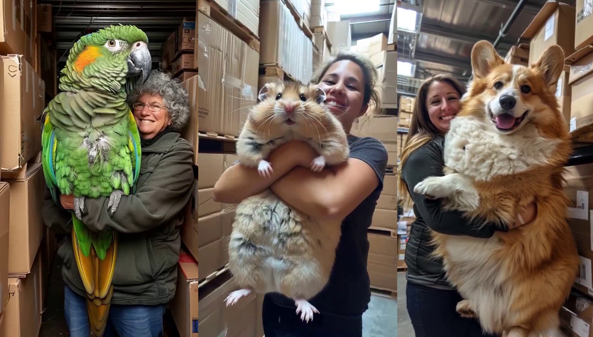 Результат оказался неожиданным: попугай, созданный нейросетью, оказался соизмеримым с владелицей, а хомяк и собака были размером с её половину.