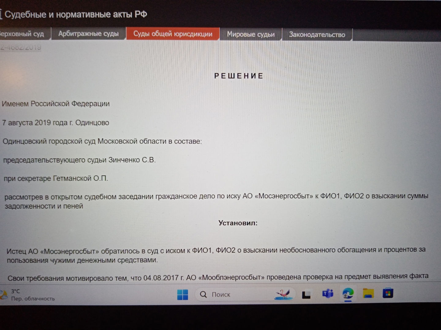 В одном из недавних дел в суде происходило взыскание после осмотра энергопринимающего оборудования по адресу должников, где было выявлено нарушение схемы учета: отсутствовала пломба на приборе учета.