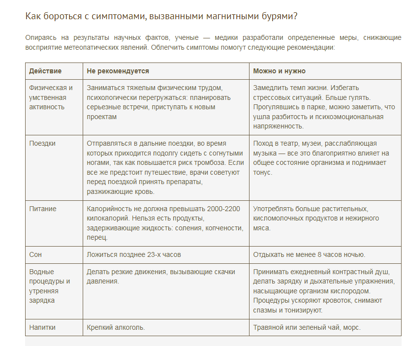 Советы врачей что делать в дни магнитных бурь ?