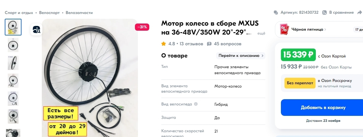 Для сравнения мотор колесо. Сломалось и надо новое купить.
