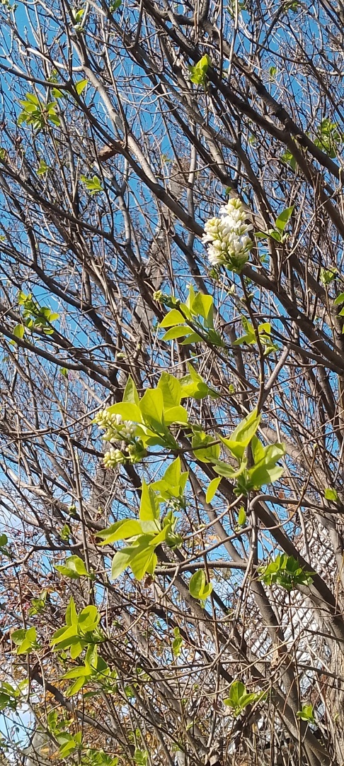 В палисаде садового домика, в конце октября, зацвела белая сирень. Фото мое.