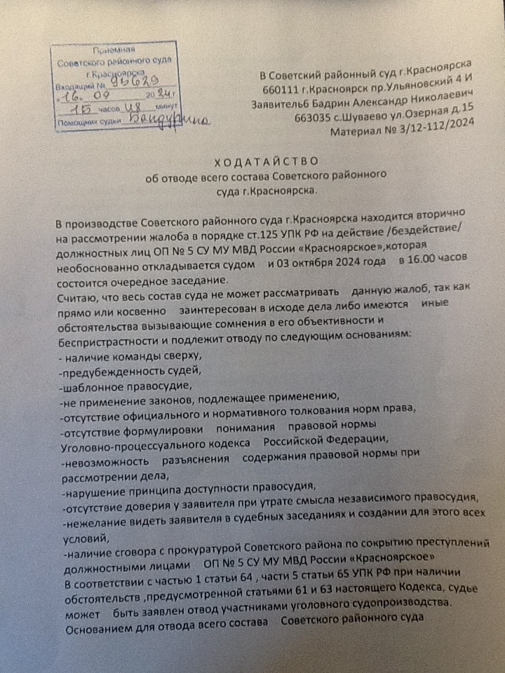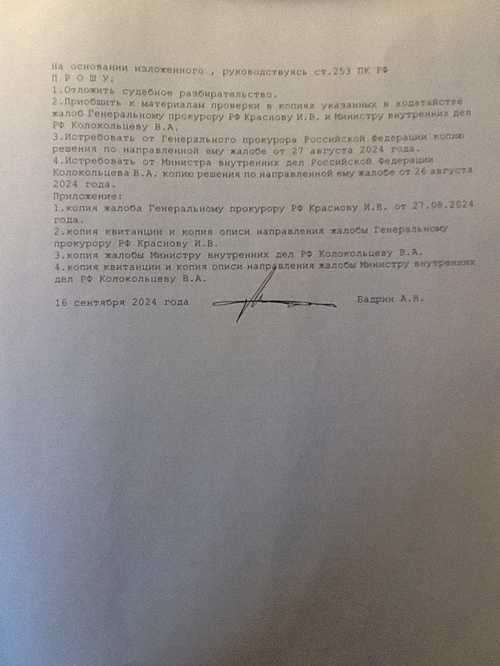 Жалоба по 125 УПК РФ на рассмотрении.Подаем вот такие ходатайства