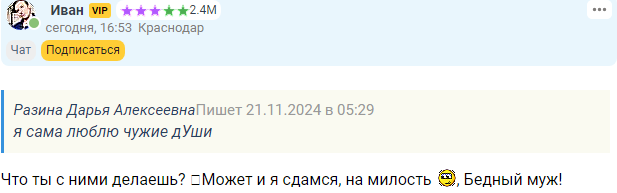 Так там про мужа Дарьи😀и бедный - не в смысле, что без денег.А что кое-кто души коллекционирует, понимаю, что это шутка от Дарьи, но, а вдруг........ 🤔