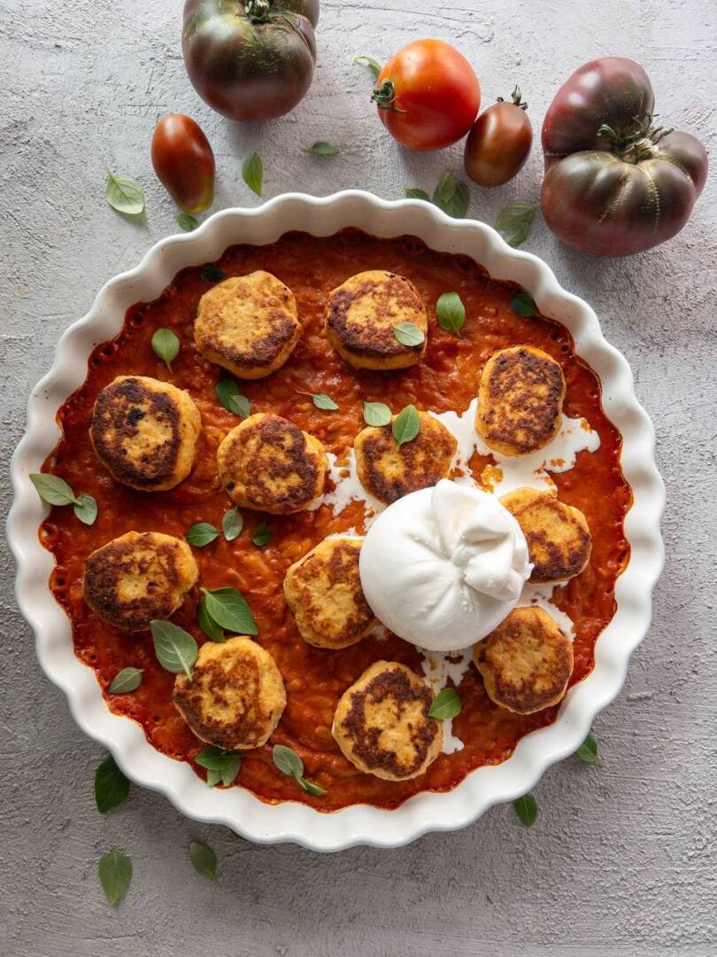 Рыбные котлетки с орзо в томатно-сливочном соусе
