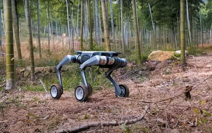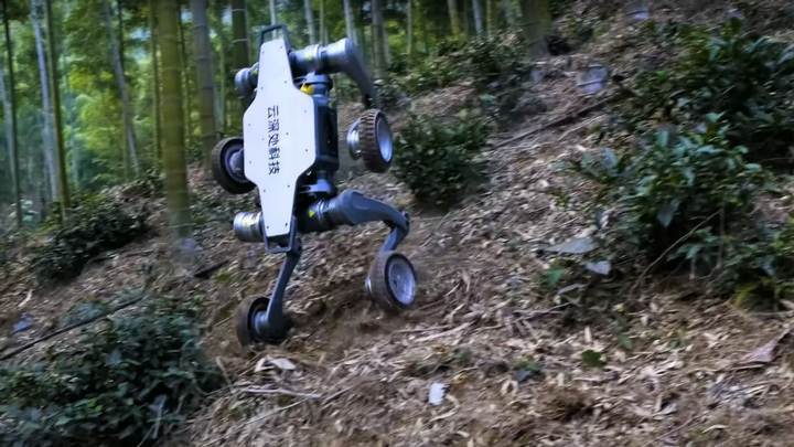 Новое четвероногое "животное" может блокировать колеса, чтобы ходить или преодолевать препятствия. Его двигатели позволяют ему передвигаться по неровной местности, такой как рыхлая грязь, пыльный гравий или даже более устойчивое покрытие.