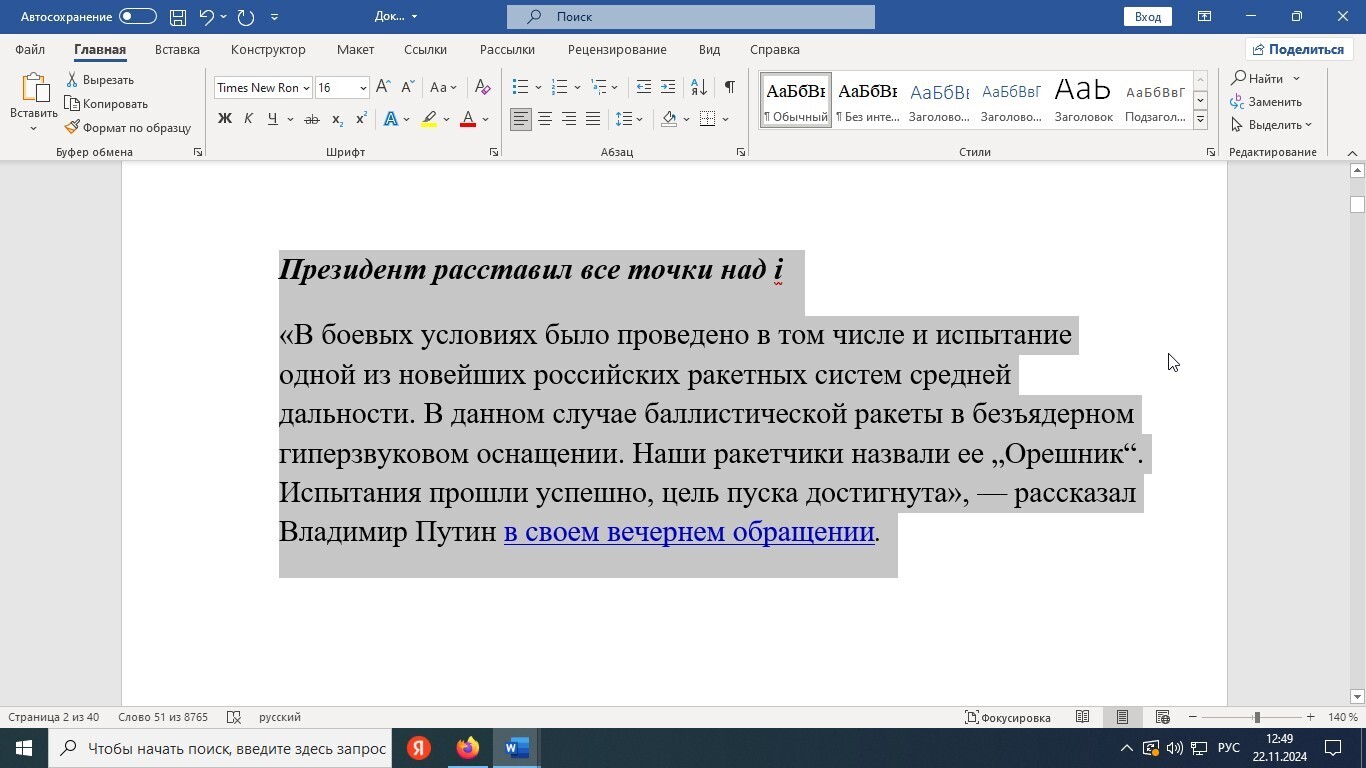 Президент расставил все точки над i (прошу прощения за фото с экрана)