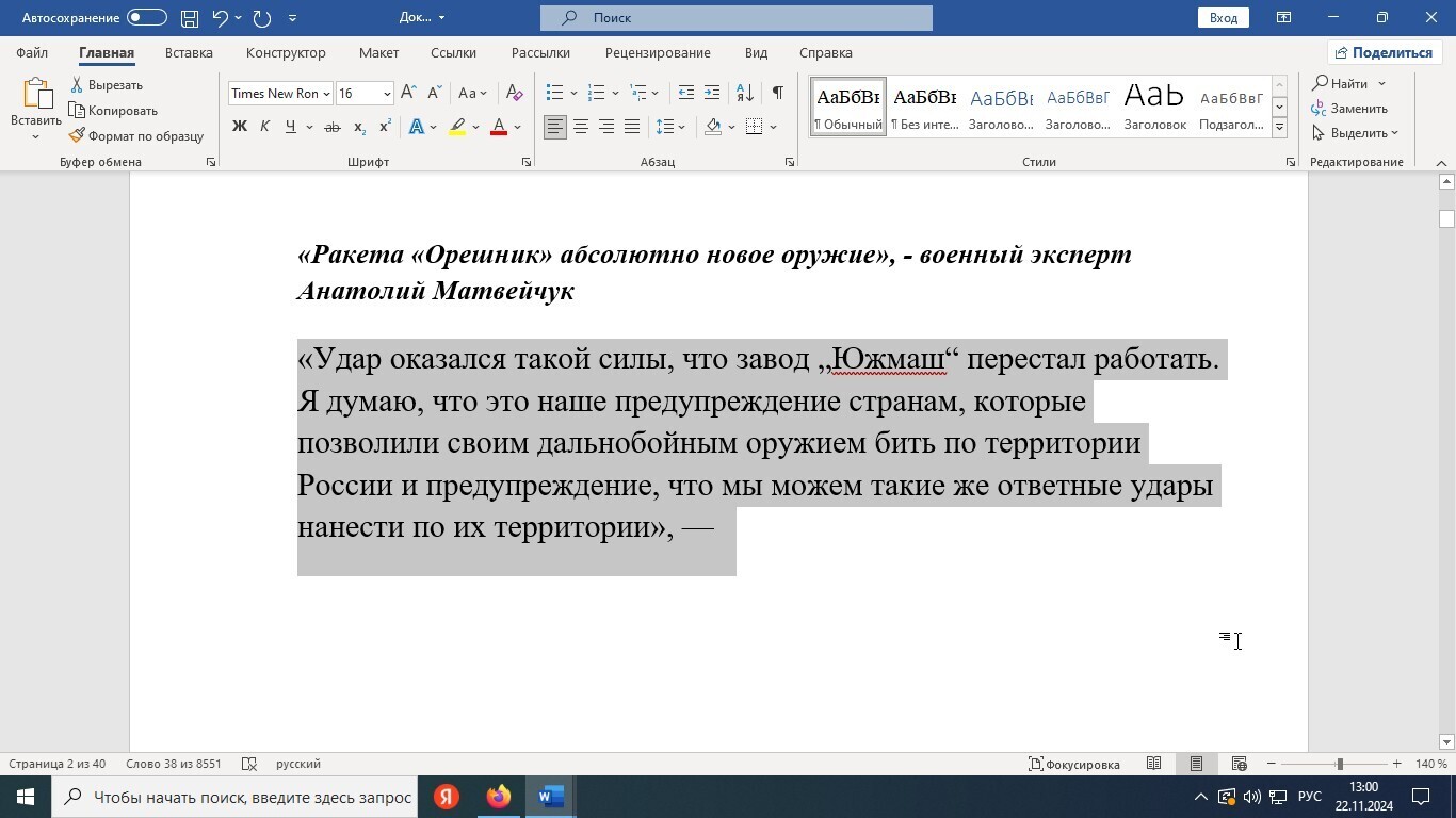 Да, ракета «Орешник» использована впервые. Ракета может нести и ядерный заряд, и обычный. В данном случае удар был нанесен обычным зарядом. Но завод «Южмаш» перестал существовать.