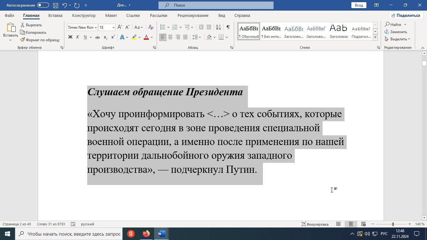 Но это не так. Президент выступил по телевидению и сообщил, что удар произведен ракетой «Орешник». Ракета хоть и баллистическая, но средней дальности. Запуск межконтинентальной ракеты, в общем-то, и не нужен. Мы же соседи.