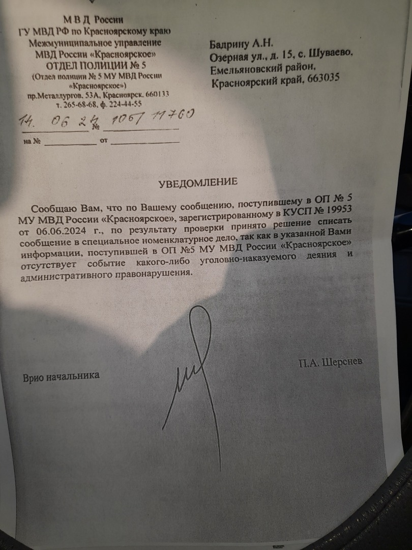 2 месяца приобщали к материалам номенклатурного дела с тайным номером КУСП?
