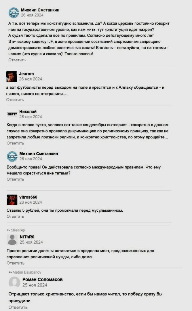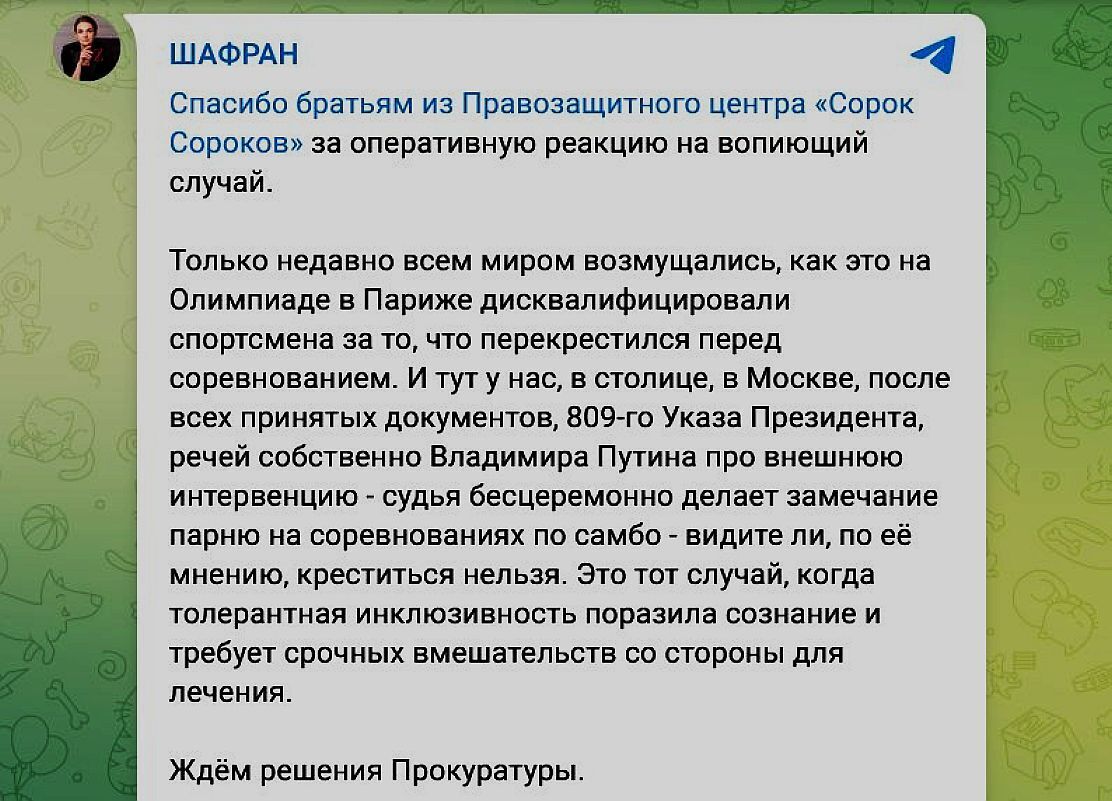 «Вы не можете креститься и молиться!»: судья по громкой связи злобно отчитала юного спортсмена, который перекрестился перед схваткой. Она права?