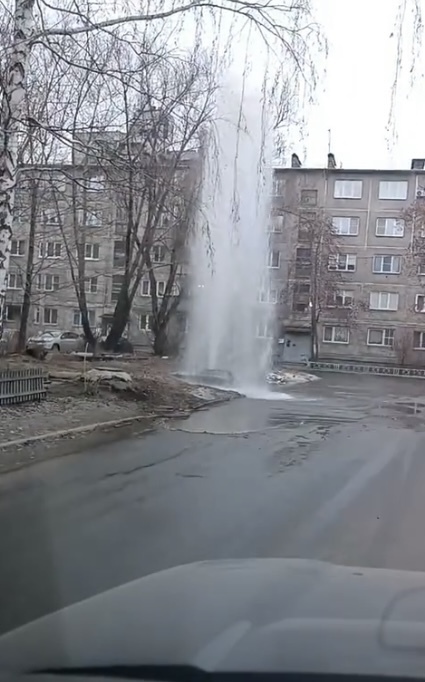 «Осталось только заборчиком обнести». В Челябинске забил фонтан высотой в несколько этажей