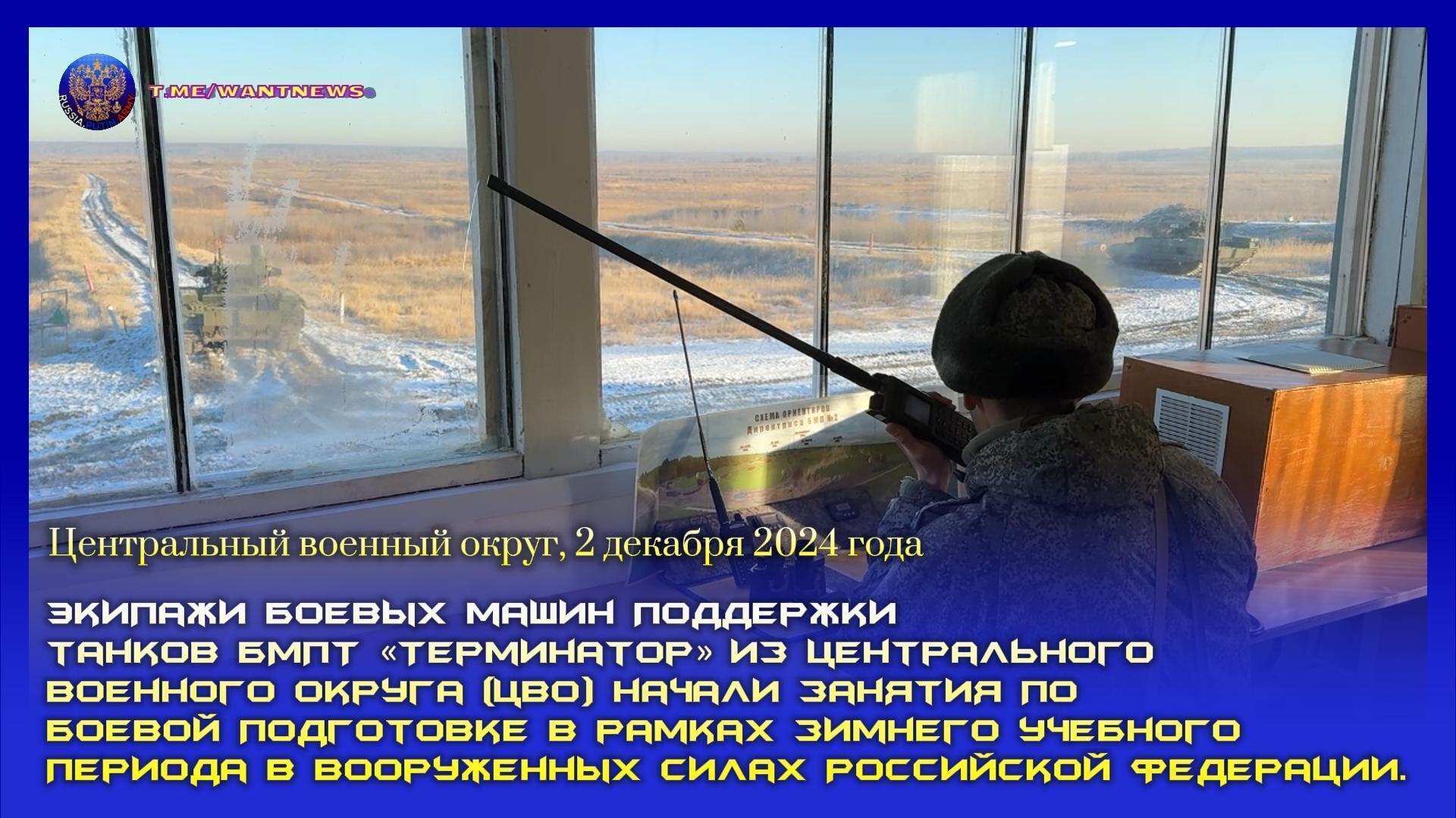◾ Экипажи боевых машин поддержки танков БМПТ «Терминатор» из Центрального военного округа (ЦВО) начали занятия по боевой подготовке в рамках зимнего учебного периода в Вооруженных Силах Российской Федерации. На этих занятиях военнослужащие, подписавшие свои первые контракты на службу и участники специальной военной операции, проходят обучение как механики-водители, операторы-гранатометчики, операторы-наводчики и командиры боевых машин. В процессе подготовки они изучают управление БМПТ и отрабатывают навыки вождения, а также ведут огонь из спаренной 30-мм пушки по целям наподобие «боевой машины пехоты», используют автоматические гранатометы АГС-17 по «бронеавтомобилям в окопе» и стреляют из 7,62-мм пулемета по имитациям расчета РПГ и живой силы «противника» на дистанциях от 1300 до 2000 метров. В дополнение к этому, на полигоне военнослужащие изучают устройство и ремонт оружия, а также процесс загрузки боекомплекта. Обучают их участники специальной военной операции, обладающие опытом применения БМПТ в боях. По окончании учебы они будут направлены в подразделения группировки войск «Центр» для выполнения боевых задач. БМПТ «Терминатор» хорошо зарекомендовала себя в ходе СВО и была введена в эксплуатацию 1 декабря 2021 года на базе танковой дивизии ЦВО.