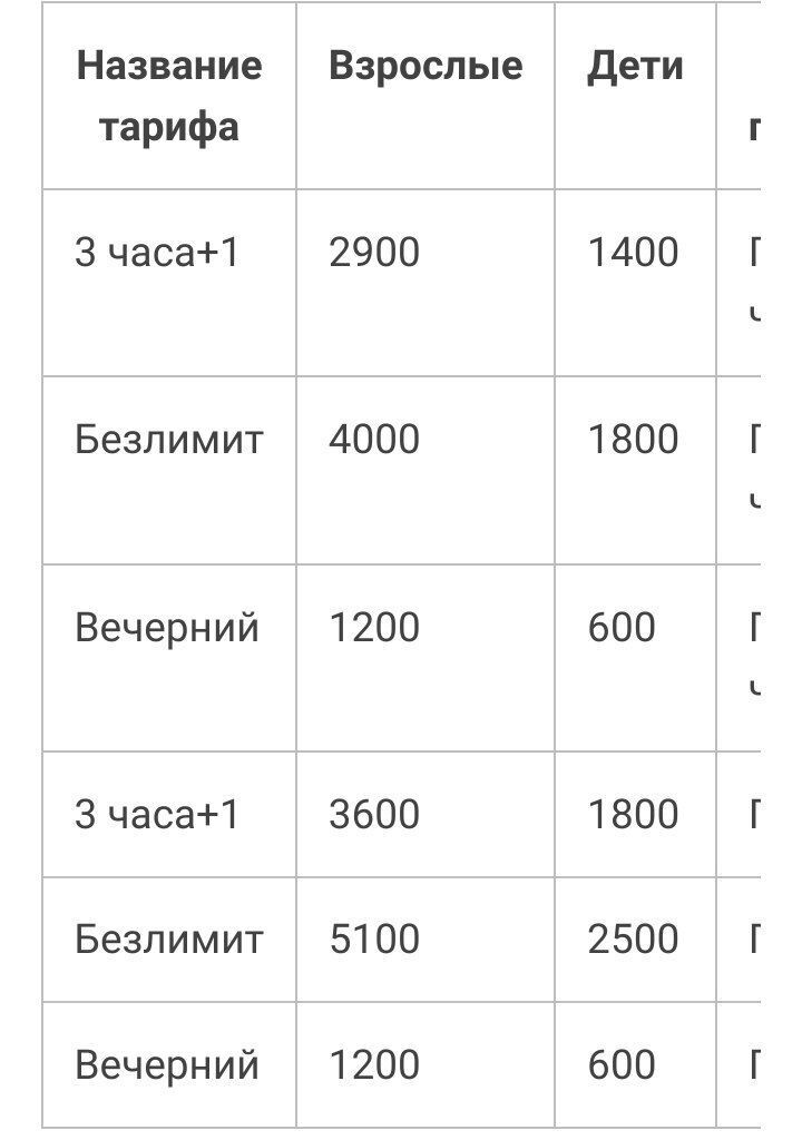 Также представители «Броско Волны» сообщили, что в сауны дети не будут допускаться вовсе. Что касается тарифов, то посетители до 2 лет могут пользоваться комплексом бесплатно, а на ребят старше 14-ти необходимо покупать взрослый билет. Расценки на скрине.