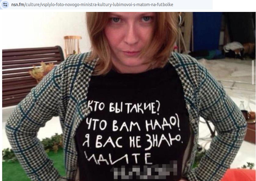 В поисковике можно "забить": "министр культуры в футболке с матерной надписью". Выйдет масса информации