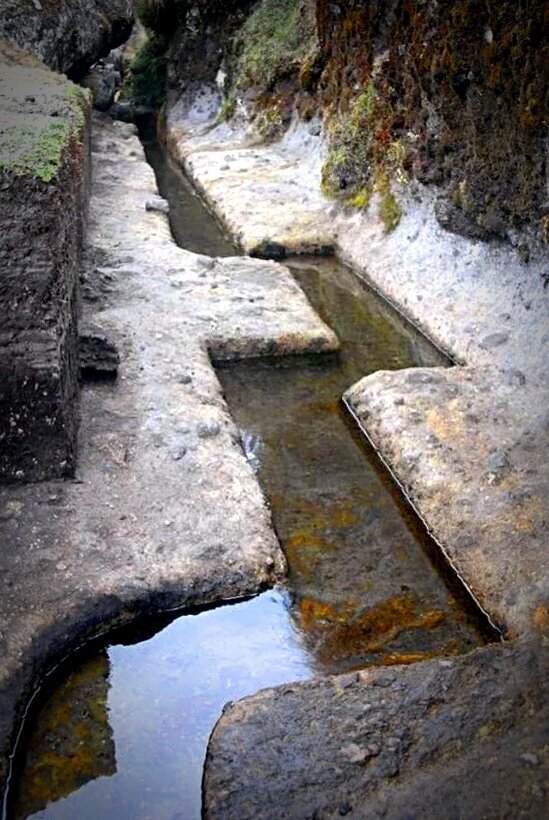 Способ непонятен, потому что в некоторых местах обработанные туннели акведука проходят сквозь всю скалу, при этом размеры отверстий небольшие, человек даже очень маленького роста в них не пролезет...