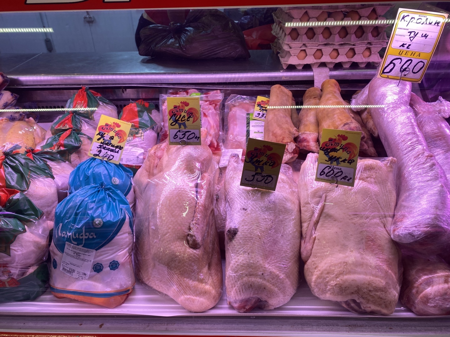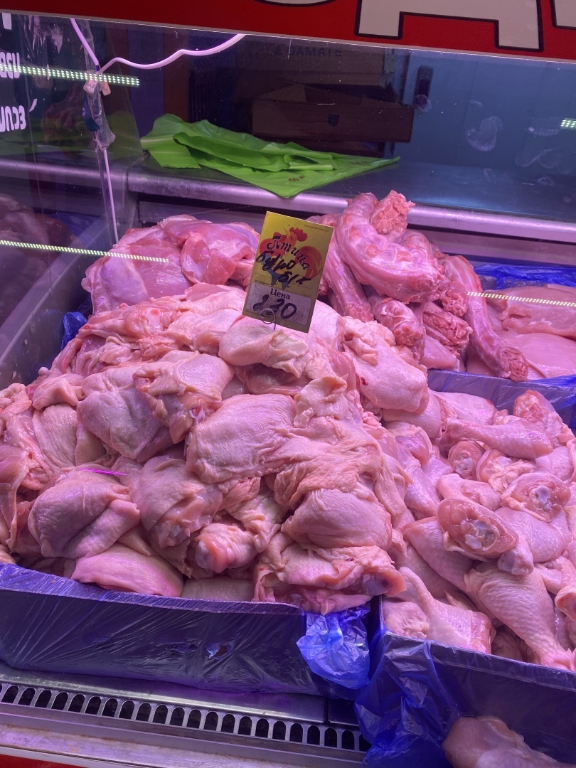 Первым делом моя цель состояла купить мясо и птицу по хорошим ценам. Поэтому я направилась искать соответствующие прилавки. Была очень удивлена, когда увидела большой ассортимент мяса и птицы с разными ценами: