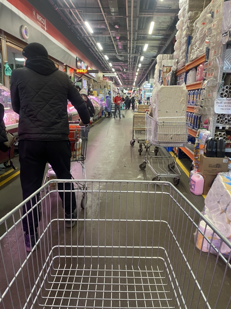 Народу не сказать что много, но проходы очень узкие, так как завалены товаром и продуктами. Кроме того, на встречу попадаются работники с огромными и загруженными телегами - приходиться прижиматься к краю, чтобы уступить дорогу.