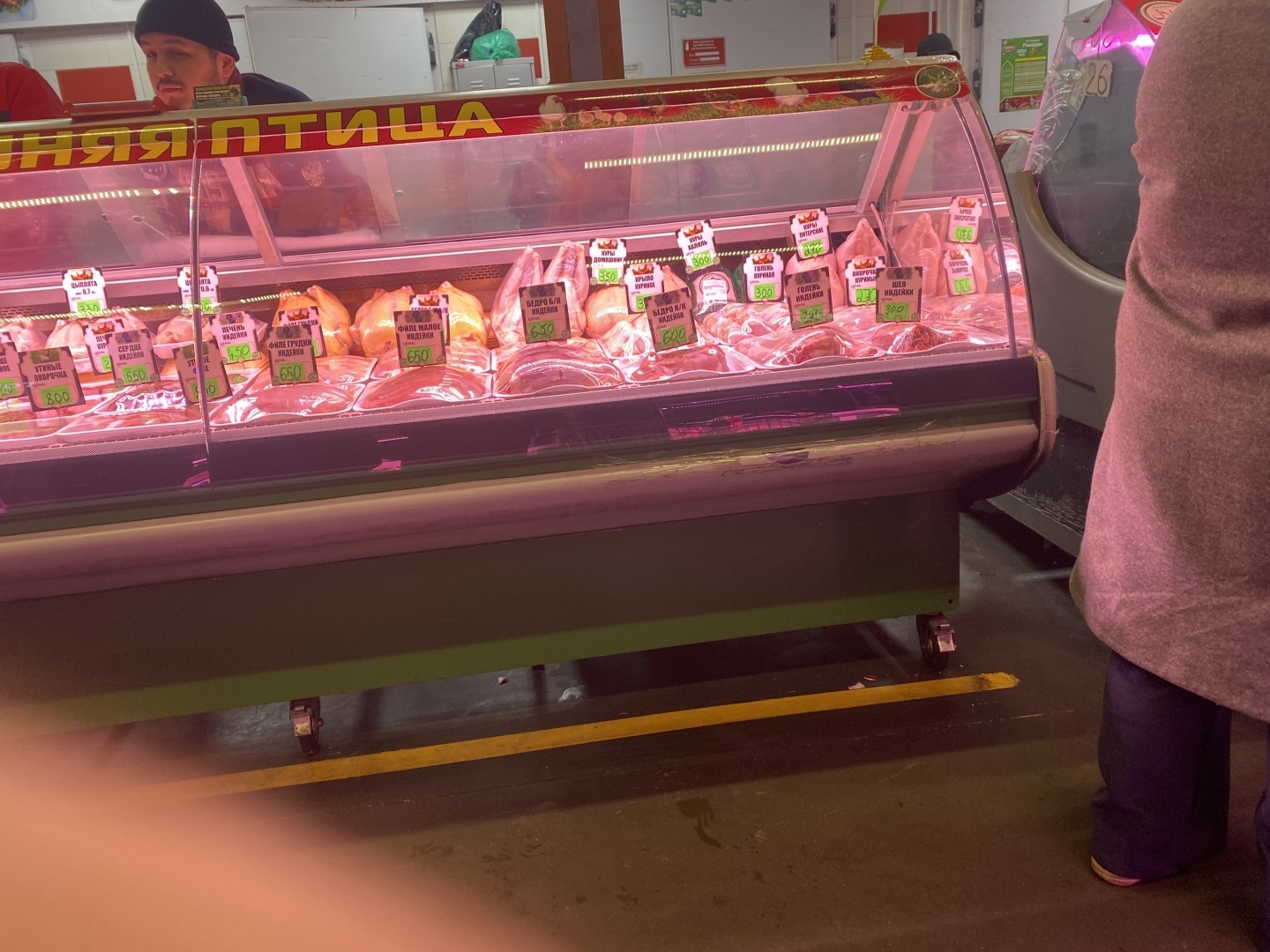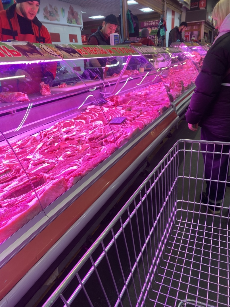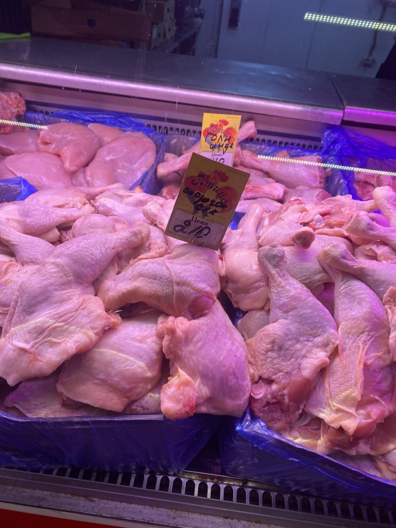 Большую часть времени я ходила в поисках мяса, высматривала качество и приемлемую цену. Мясо практически везде было хорошее, а выбор бал большой. Цены начинались от 480 рублей до 690, в зависимости от места тушки: