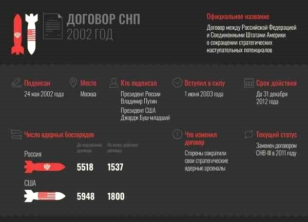 Следующий договор по сокращению ядерных вооружений (Договор о сокращении стратегических наступательных потенциалов, или СНП) был подписан Владимиром Путиным и Джорджем Бушем - младшим в 2002 году. Из этого договора вышла Россия в 2023 году.