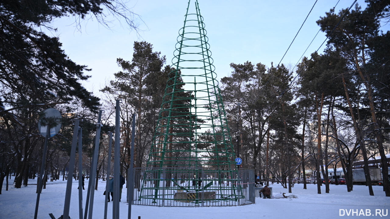 Новогодний городок впервые начали обустраивать на Амурской бульваре, на площадке недалеко от Центрального рынка. На данный момент рабочие собирают каркас будущей елки высотой 15 метров, позднее ее украсят пластиковыми шарами красного и синего цвета.