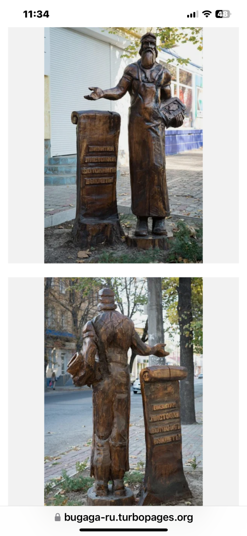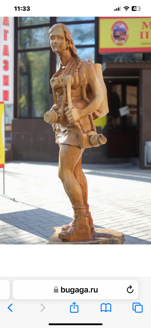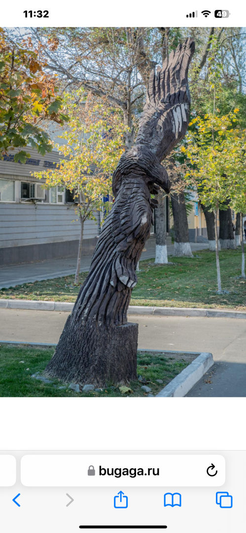 У нас по городу фигуры , из неспиленых до конца деревьев , вырезаны мастерами )