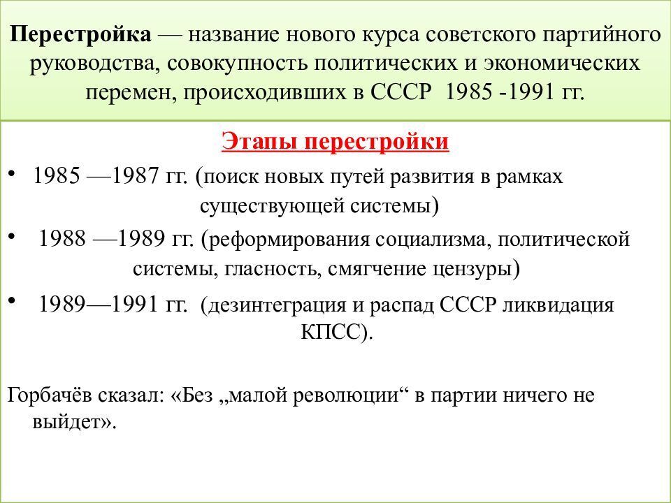 Этапы "Перестройки" - как ее сейчас себе представляют: