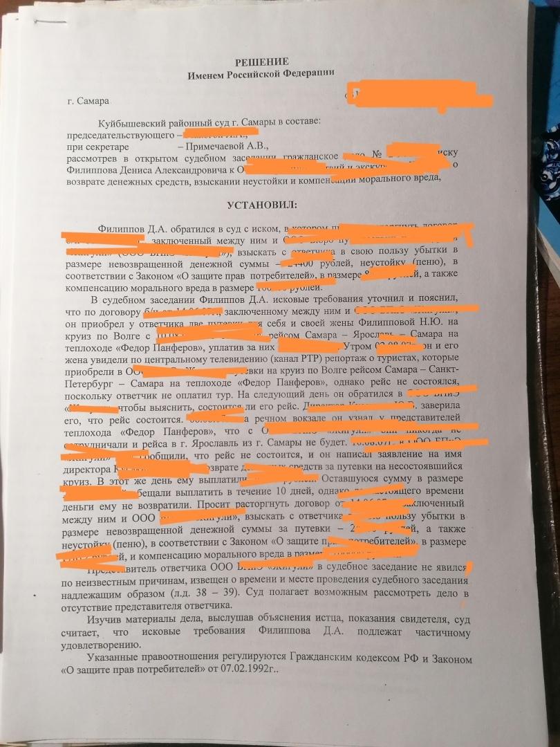 Решение было вынесено в нашу пользу, все суммы удовлетворёны в полном объёме, кроме "моралки". Её, как обычно, уменьшили.