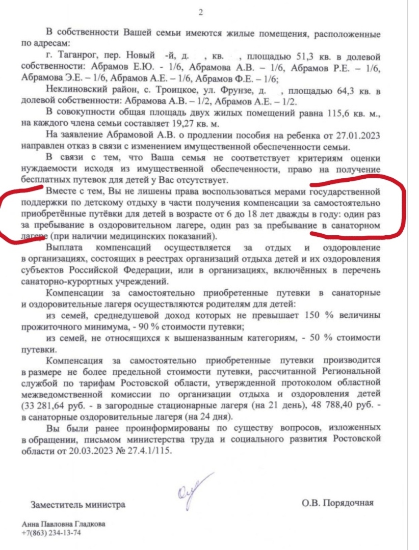 Вы в курсе сколько стоит путевка в лагерь? А детей у автора 3-е. Даже одна путевка с компенсацией - это не дешевое удовольствие. Компенсируют половину. у них среднедушевой превысил.