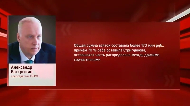 Установлена общая сумма взяток, полученных бывшей заместительницей председателя правительства Подмосковья Светланой Стригунковой. За девять месяцев 2024 года коррупционеры украли 14,2 миллиарда рублей. В суд направлено 9000 уголовных дел, включая дела против судей, адвокатов и народных избранников.