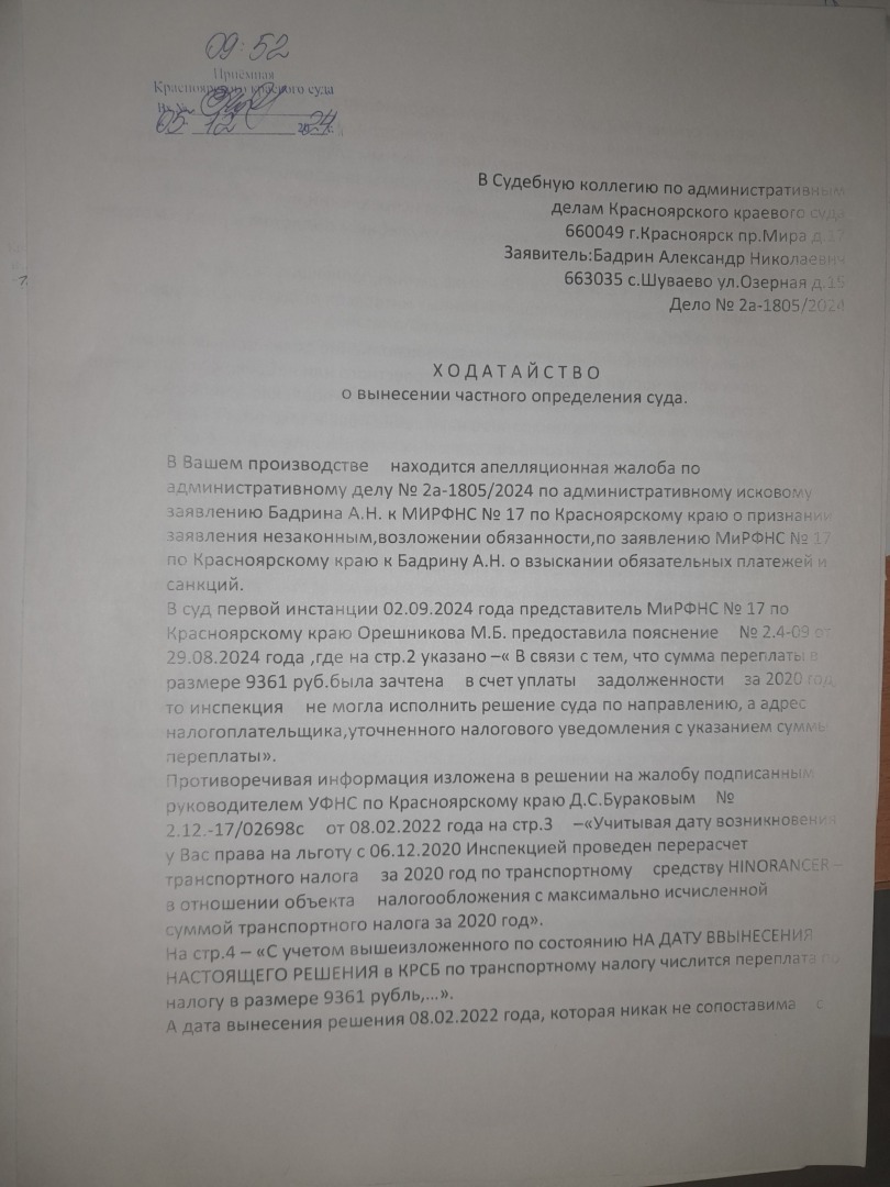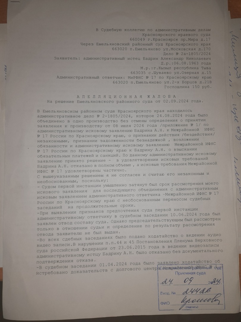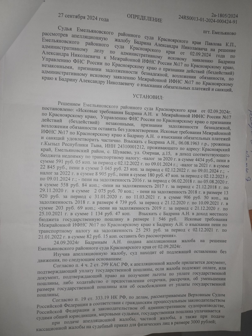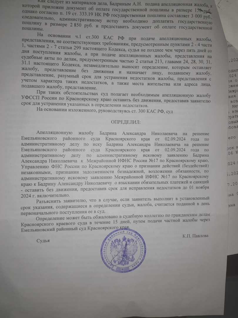 Сегодня расскажу и покажу как апелляцию с учетом новых сумм госпошлин рассматривает жалобы.Материала много, придется потратить Н-ное время, но иначе не поймете насколько судебная система в Красноярском крае находится под фискальным органом по вынесению заказного решения.А может я не прав? При наличии вот такого решения