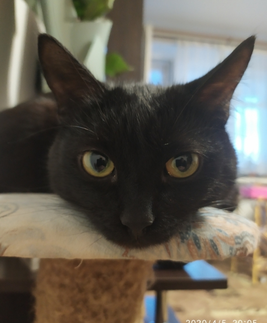 И весь его мир–это наша квартира, и он вполне счастлив. Кроме нашей семьи ему никто и не нужен. Бывает, залезет на колени и трется своей мордой об мою щетину, мурча как трактор.