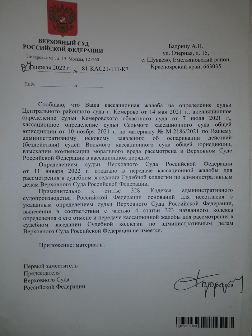 подаем жалобу Председателю С РФ с таким же ходатайством