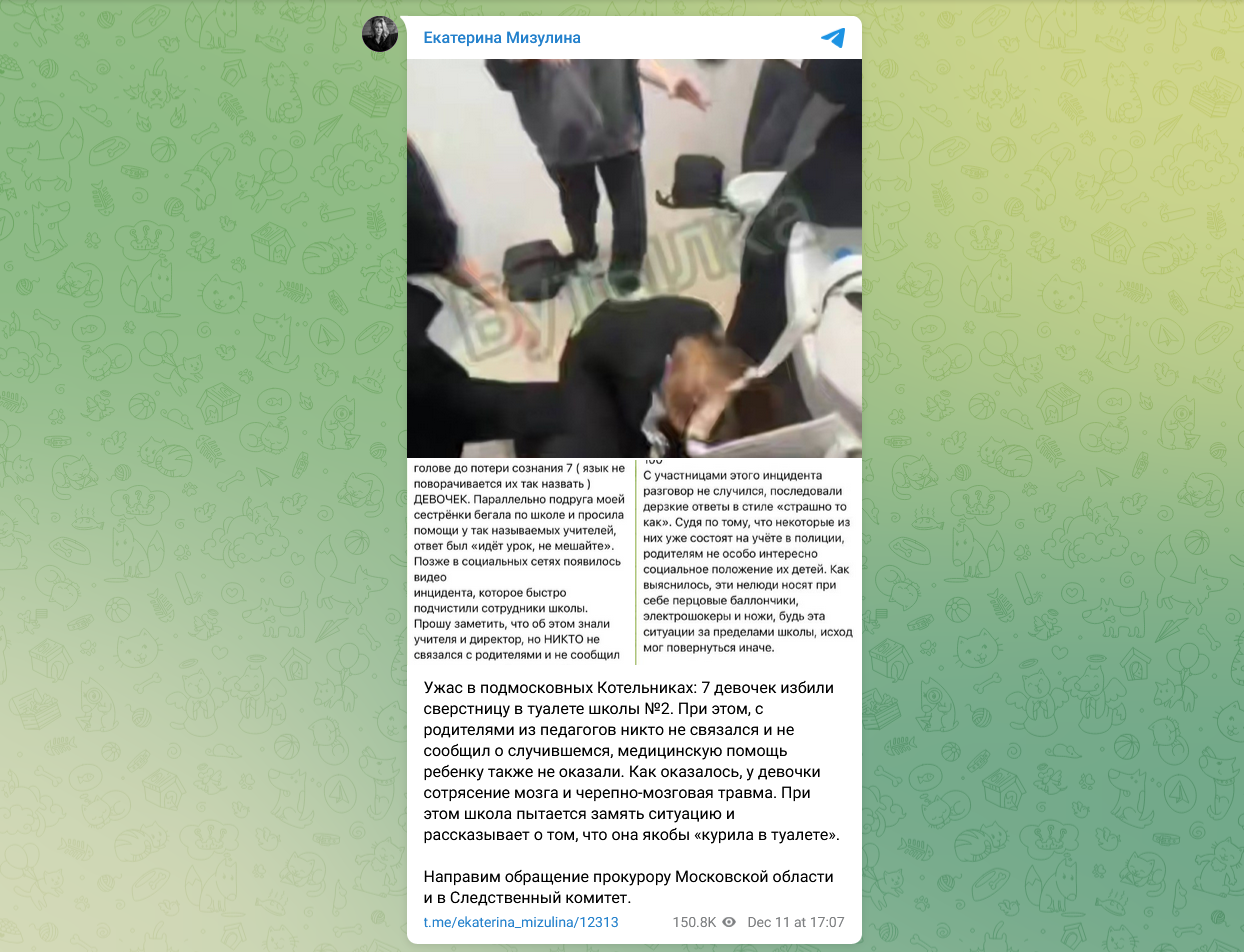 Тем временем старшая сестра Алина не захотела оставлять случившееся втайне. Она связалась с журналистами и попросила рассказать историю 14-летней жительницы Котельников. Примерно в это же время по телеграм-каналам начала вируситься видеозапись с избиением Киры.
