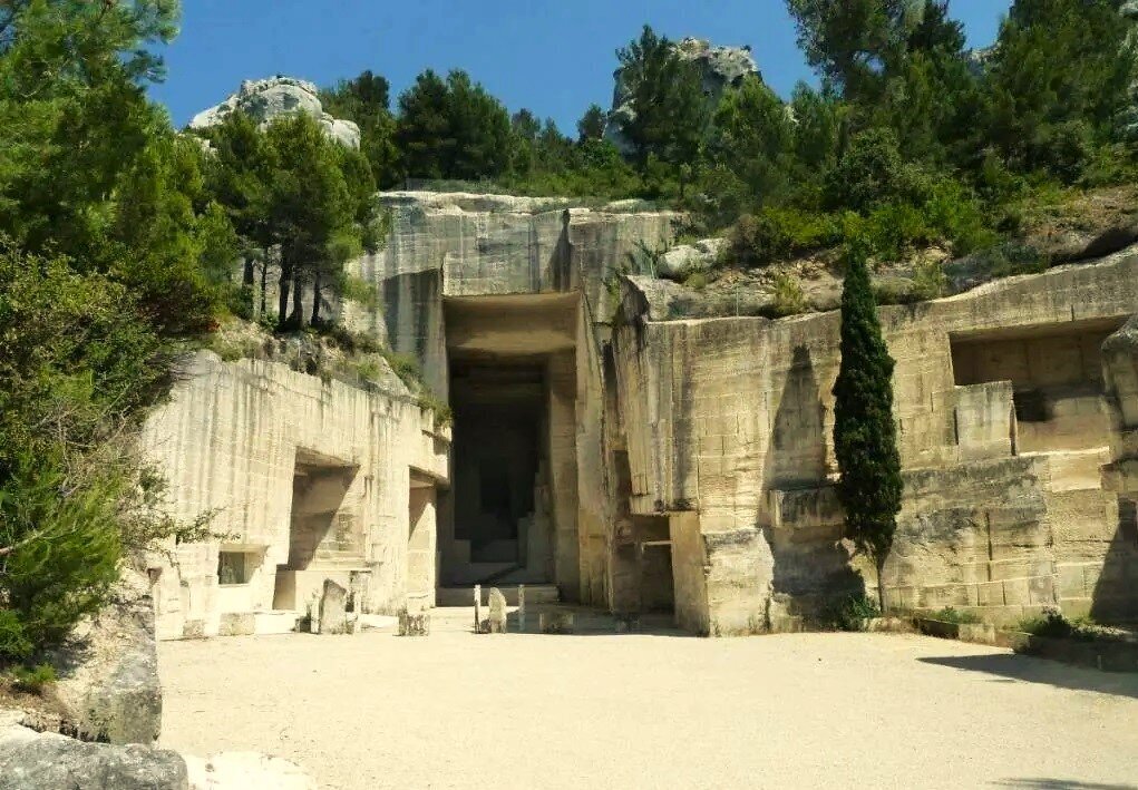 Официальные исторические источники сообщают, что римляне добывали здесь известняк, чтобы восстановить лигурийский город Гланум, а затем построить город Арль. Карьер был закрыт в 1935 году. Небольшая часть горных выработок не древняя, но все равно остаются вопросы.