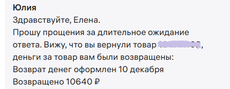 А 7 декабря продавец, наконец-то, откликнулся. На самую первую заявку, которую я отправляла 1 декабря.