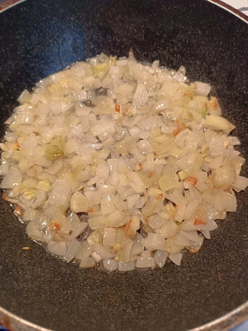 Следующий шаг. Обжариваем репчатый лук.150 гр. до золотистого состояния.