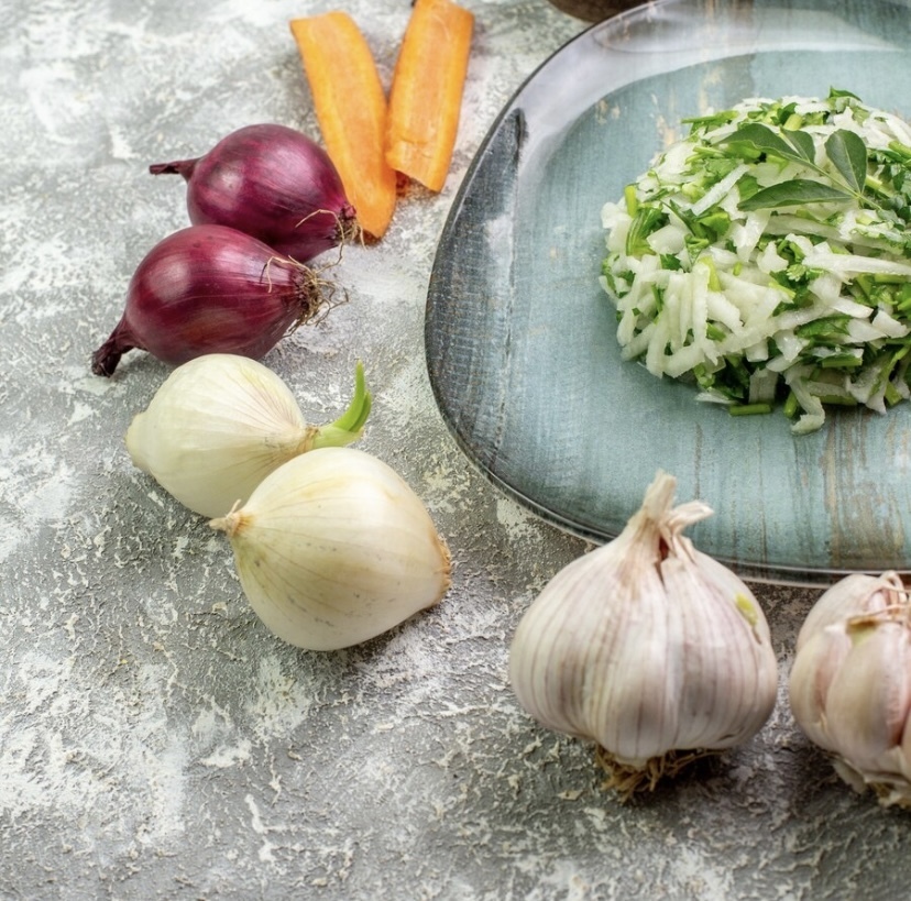ЛУК И ЧЕСНОК В САЛАТЕ