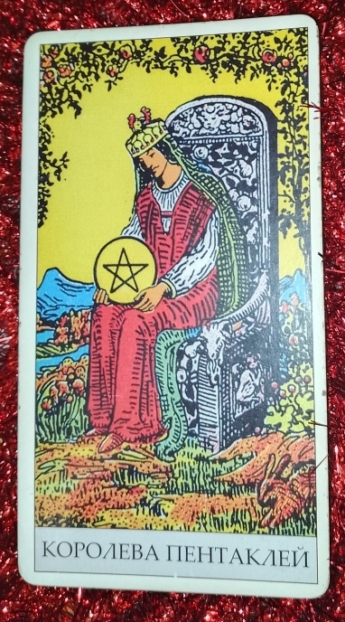 Фигурная карта, то есть очень часто этой картой показаны какие-то фигурные люди, например жена. Если Вы в раскладе на мужчину часто встречаете королеву пентаклей, то стоит задуматься, потому что какая-то женщина на максимально основательных позициях с этим человеком 100% есть. Кто она - мы не знаем, возможно жизнь покажет, может гражданская жена, может официальная, но это однозначно очень значимая фигура в его жизни. По Пентаклям проходят те женщины, которые уже имеют определëнный статус рядом с этим мужчиной. Это та женщина, которой он отдаёт свои деньги, имейте это в виду, этот человек заведует финансами, в том числе это может быть женщина, которая сама достаточно не плохо финансово обеспечена.
