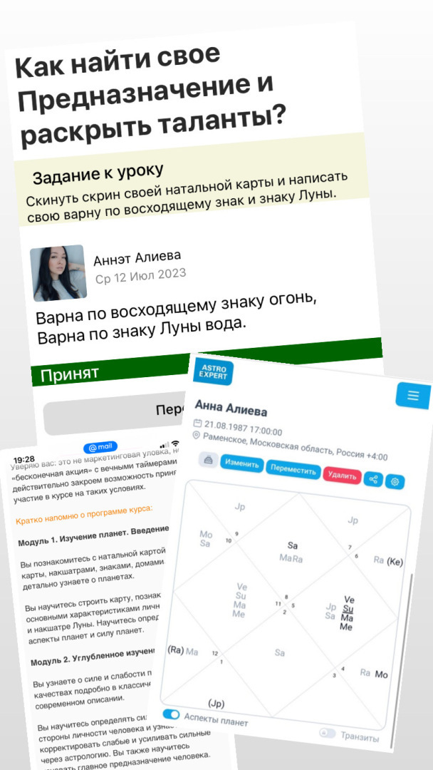 Во время прохождения обучения Ведической астрологии, я смогла самостоятельно составить карту. После каждого урока, нужно было ответить на вопросы и скинуть ответ куратору. Мое обучение состояло из нескольких модулей. Каждый день мы проходили вебинар по видео-связи с Ириной. После, я самостоятельно выполняла задания и отправляла их на проверку.