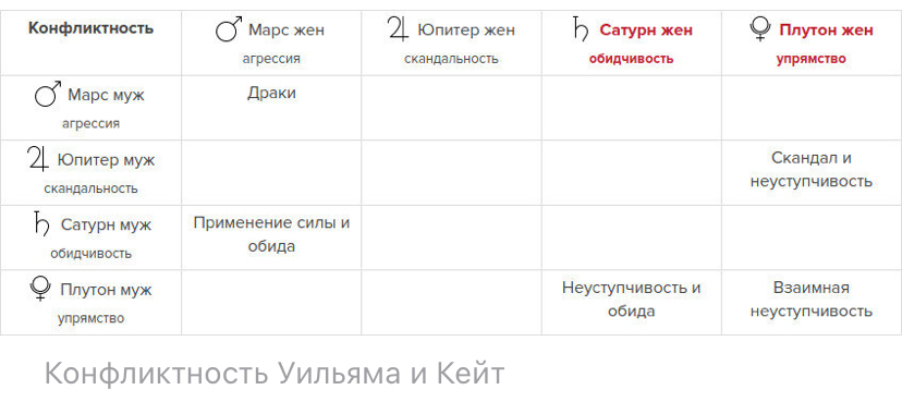 95% составляет их совместимость. В натальных картах Кейт Миддлтон и принца Уильяма мы можем это увидеть.