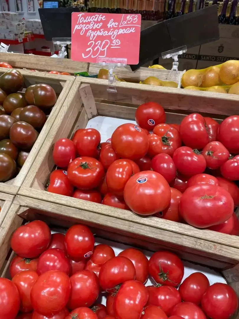 Помидоров тоже обнаружила несколько видов. Розовые Азербайджан 340 руб., на ветке 240 руб., бурые 350 руб. Выбрать можно. На салат взяла на ветке, вкус у всех одинаковый – пластмассовый!