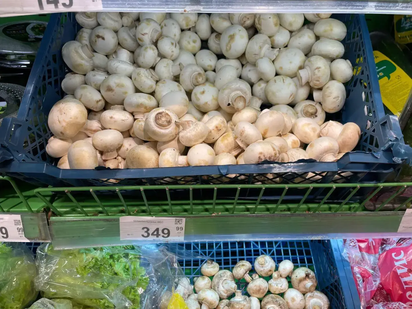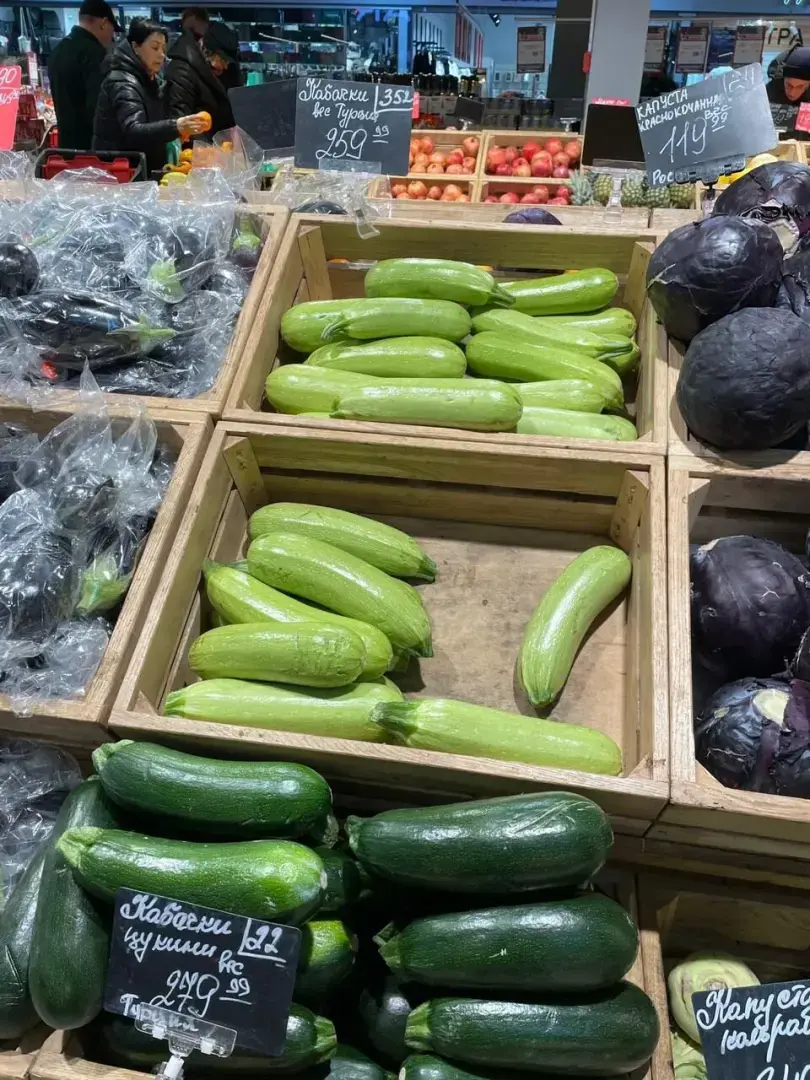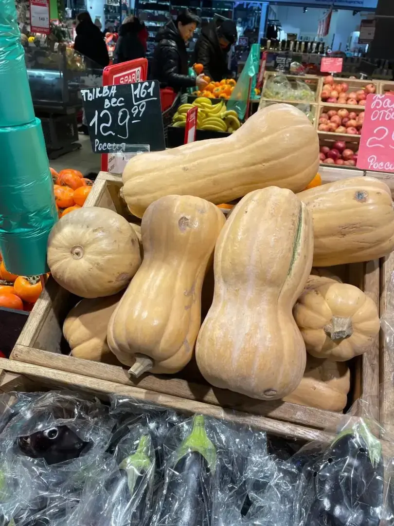 Кабачки – 260 и 280. Дороговато! Не сезонный товар. Зимой их никто не берёт, но цены всё равно растут! Тыквы по 130 руб. тоже на любителя, но это явно не местные. Фаршированный перчик в это время года будет золотым! Самый дешёвый (желтый) 300р, красный и зелёный по 500–600 руб. Шампиньоны люди покупают круглогодично, я сама их люблю в салатах, однако, за 350 руб. брать не стану, свои грибы есть (полная морозилка) и маринованных в баночках хватает.